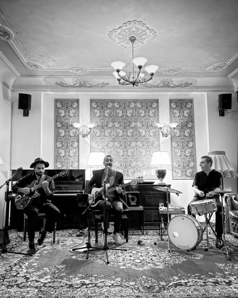 Inspiriert vom Nat King Cole Trio und mit Gitarre, Kontrabass und Klavier präsentiert die Band...
